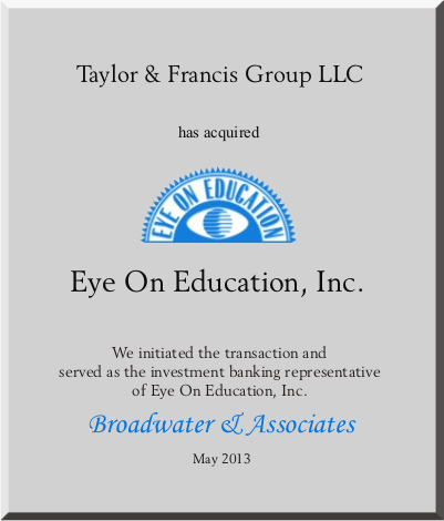 Sale of Eye On Education, Inc., a leading publisher of K-12 professional development books and materials, to Taylor & Francis Gropu LLC