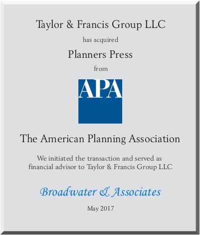 Acquisition of Planners Press, the book publishing division of The American Planning Association (APA), by Taylor & Francis Group