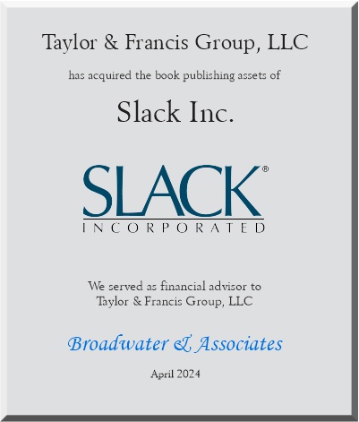 Acquisition of the publishing assets of Slack Inc., a leading publisher of allied health and clinical medical books, by Taylor & Francis Group, LLC