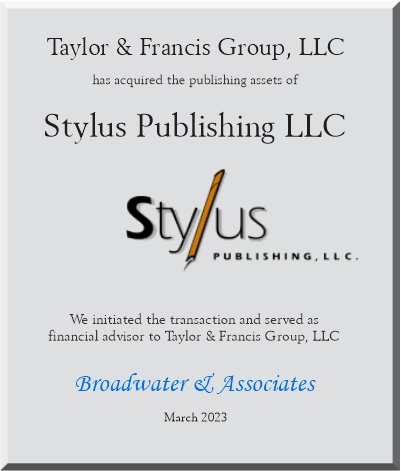 Acquisition of the publishing assets of Stylus Publishing LLC, a premier publisher serving teachers, administrators and policymakers in higher education, by Taylor & Francis Group, LLC